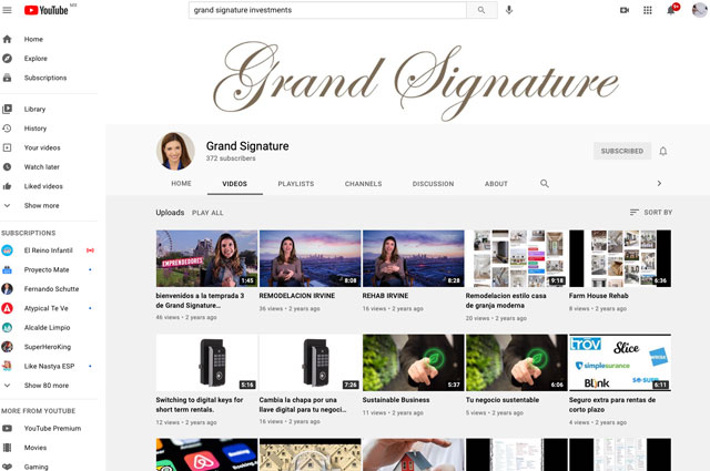Página Youtube para amentoria de bienes raices